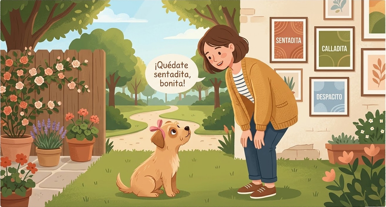 Calladito, despacito: how Spanish uses little words to soften commands In English, you are just sitting or quiet. In Spanish, you can be sentado, but also sentadito, callado, or calladito, depending on the tone. Those little endings -ito, -ita, -cito, -cita don’t change the basic meaning, but they change how it feels: more affectionate, softer, […] More